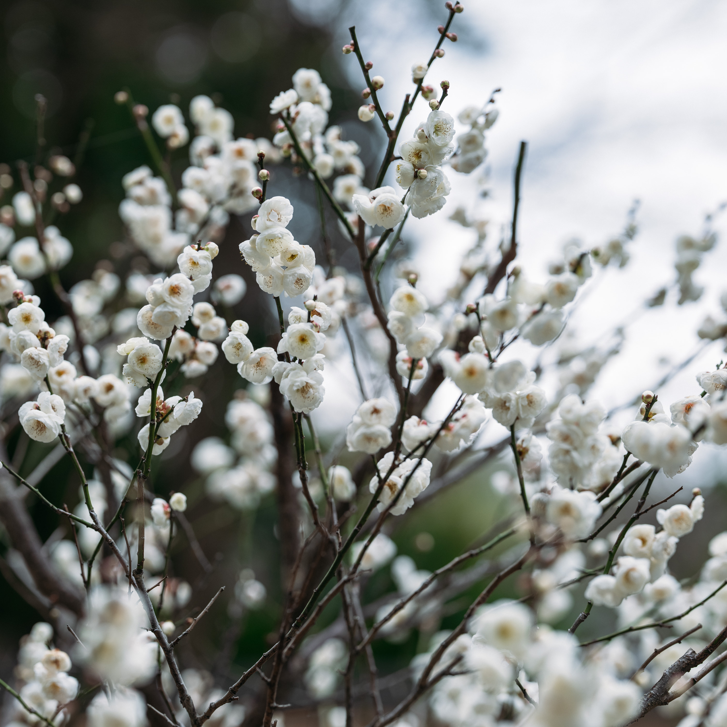 今年の梅の開花は、2月下旬から3月下旬にかけてが見頃と予想されます。一重、八重をはじめ、豊富な種類の梅が見事に咲き、境内は芳しい梅の香りに包まれます。