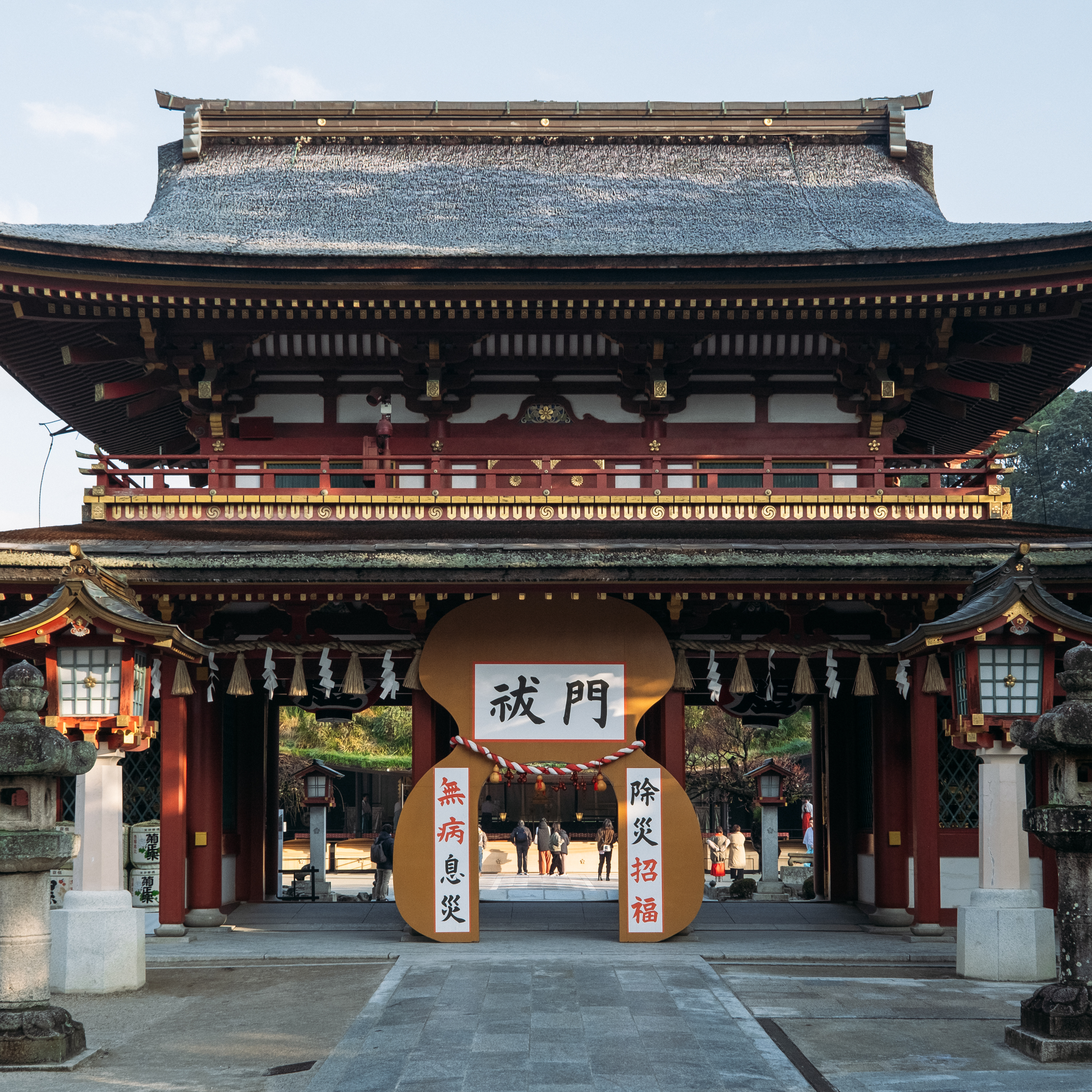 当宮には、梅の木の下で「ひょうたん酒」を飲むと、難を免れるという伝承があり、期間中厄除祈願をお受けの方にはお祓いの後、御門内梅の木の下でひょうたん酒をお召し上がりいただけます。